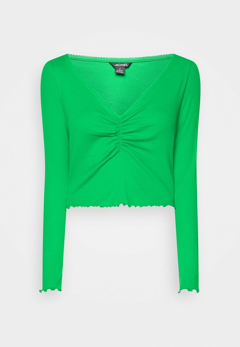 Stay stylish and comfortable this Spring/Summer with Monki's Casual/Elegant Long Sleeve Green T-shirt for Women. The perfect blend of laid-back and chic, this top is ideal for any casual outing or dressier occasion. Its vibrant green color will add a pop of freshness to your wardrobe. Whether paired with jeans or a skirt, this tee is a wardrobe essential for the warmer months.