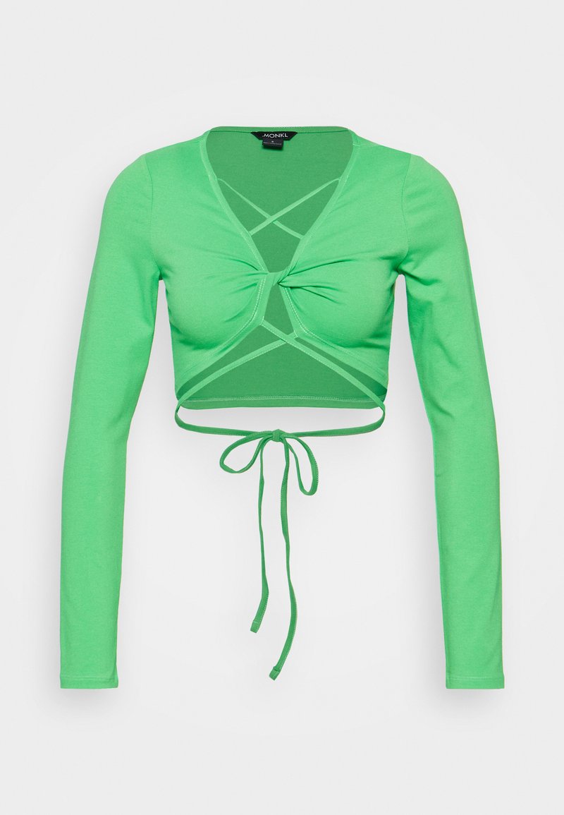Stay stylish and comfortable this Spring/Summer with Monki's Casual/Elegant Long Sleeve Green T-shirt for Women. The perfect blend of laid-back and chic, this top is ideal for any casual outing or dressier occasion. Its vibrant green color will add a pop of freshness to your wardrobe. Whether paired with jeans or a skirt, this tee is a wardrobe essential for the warmer months.