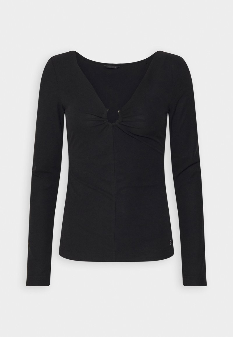 Elevate your spring/summer wardrobe with this Casual/Elegant Guess long sleeve shirt for women. Made from soft fabric in a sleek black color, this versatile piece is perfect for any occasion. Pair it with jeans for a casual look or dress it up with a skirt for a more elegant ensemble. Stay stylish and comfortable all season long with this must-have wardrobe essential.