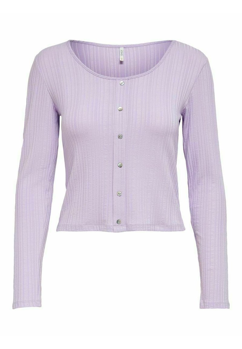 Stay effortlessly chic this Spring/Summer with the Only Long Sleeve T-shirt in a stunning violet hue. This versatile piece seamlessly transitions from casual to elegant, making it perfect for any occasion. Crafted for women who value style and comfort, this top is a must-have addition to your wardrobe. Embrace the season in flattering style with the Only Long Sleeve T-shirt in violet.