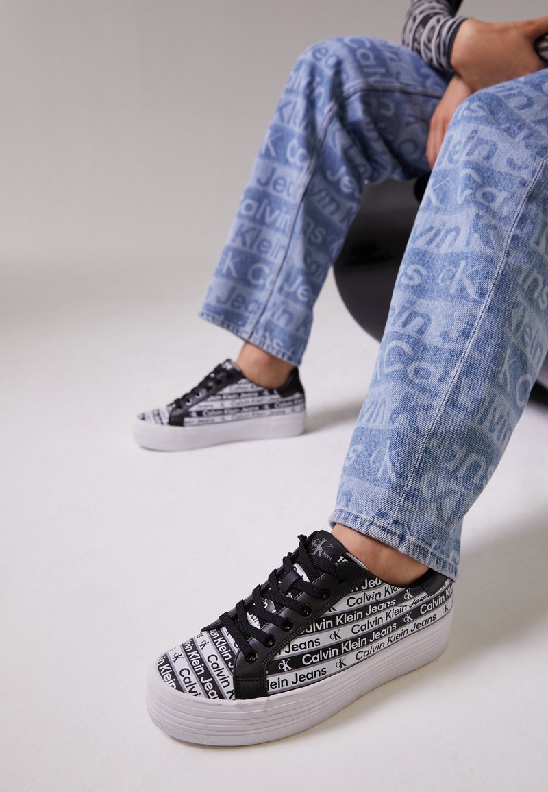 Stay stylish and comfortable this Autumn/Winter with Calvin Klein Jeans' Sportive/Casual Women's Shoes in classic Black. These sneakers are perfect for everyday wear, whether you're running errands or meeting friends for coffee. The low-top design and trendy brand logo make these shoes a must-have for any casual outfit. Step out in style with these versatile and chic Calvin Klein Jeans sneakers.