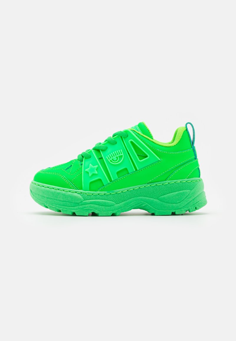 Stay comfortable and stylish this Autumn/Winter season with the CHIARA FERRAGNI Sportive/Casual sneakers in a trendy Green color. These low top sneakers are perfect for everyday wear, whether you're running errands or meeting up with friends. With a sleek design and durable construction, these shoes are a must-have addition to your wardrobe. Elevate your casual look with these fashionable sneakers from CHIARA FERRAGNI.