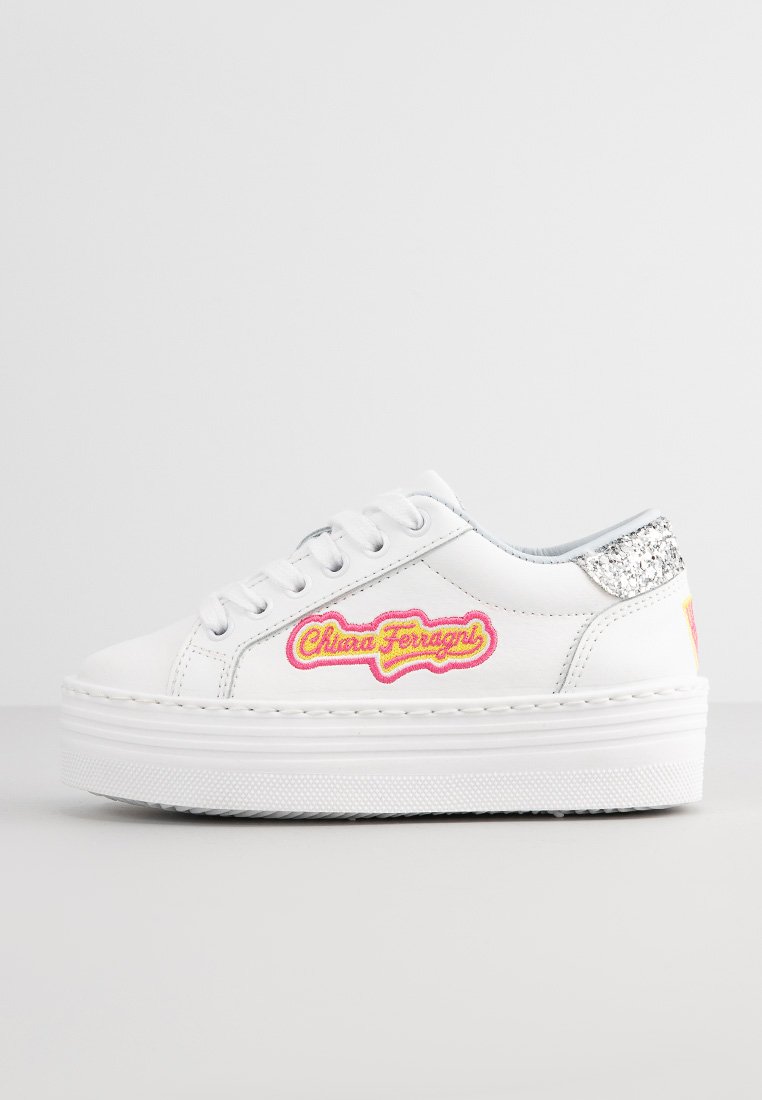 Stay stylish and comfortable in the CHIARA FERRAGNI Sportive/Casual sneakers for women. Perfect for the Autumn/Winter season, these white shoes are a must-have addition to your wardrobe. Whether you're running errands or hitting the gym, these low-top sneakers provide the perfect blend of fashion and functionality. Elevate your outfit with these chic and versatile shoes.