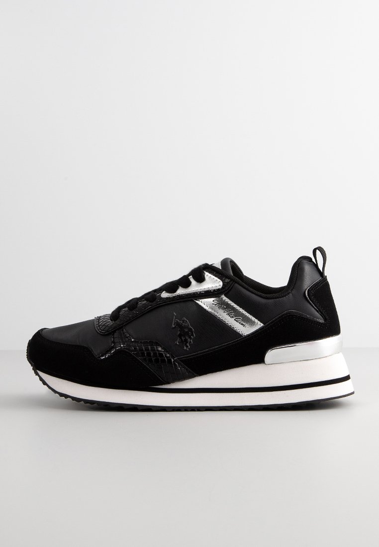 Stay stylish and comfortable this Autumn/Winter season with these black sporty/casual sneakers from U.S. Polo Assn. Perfect for everyday wear, these low-top sneakers feature a sleek design and are perfect for pairing with jeans or leggings. Whether you're running errands or meeting up with friends, these shoes will keep you looking chic and feeling cozy all day long. Elevate your casual look with these versatile U.S. Polo Assn. sneakers.