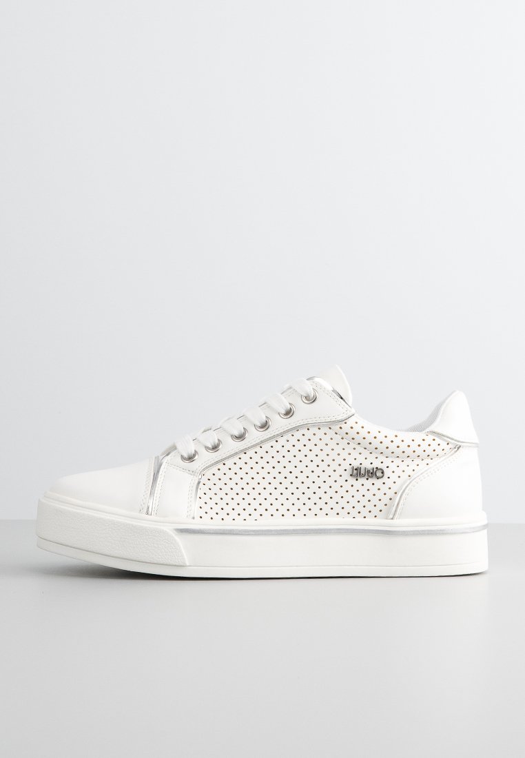 Stay stylish and comfortable this Autumn/Winter season with these sporty-casual women's sneakers from LIU JO in white. Perfect for all-day wear, these low-top sneakers are versatile and on-trend, providing both style and support wherever your day takes you. With a sleek design and durable construction, these sneakers are a must-have for any wardrobe. Upgrade your footwear collection with the LIU JO low-top sneakers.