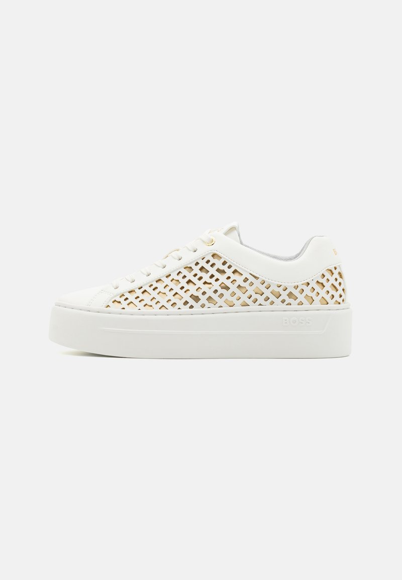 Stay stylish and comfortable this Autumn/Winter season with these Boss sportive/casual sneakers for women in a trendy beige color. Perfect for pairing with any casual outfit, these low-top sneakers combine fashion with functionality. From running errands to grabbing coffee with friends, these versatile shoes are a must-have for your wardrobe. Elevate your style with Boss sneakers.