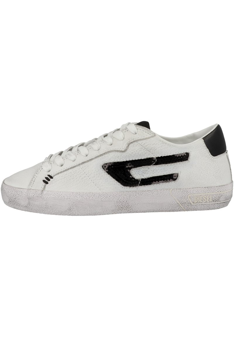 Stay stylish and comfortable this Autumn/Winter season with these Diesel low-top sneakers for women. Perfect for a sportive or casual look, these white sneakers are versatile for any outfit. Made with high-quality materials, these shoes will keep your feet warm and cozy in the colder months. Step out in fashion with these Diesel sneakers as your go-to footwear choice.
