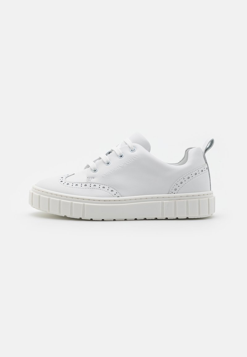 Stay stylish and comfortable this Autumn/Winter season with these Emporio Armani sneakers. Perfect for sporty or casual looks, these white low-top sneakers are a must-have addition to your wardrobe. Featuring a sleek design and durable construction, these shoes are both fashionable and practical. Step out in style with these Emporio Armani sneakers.