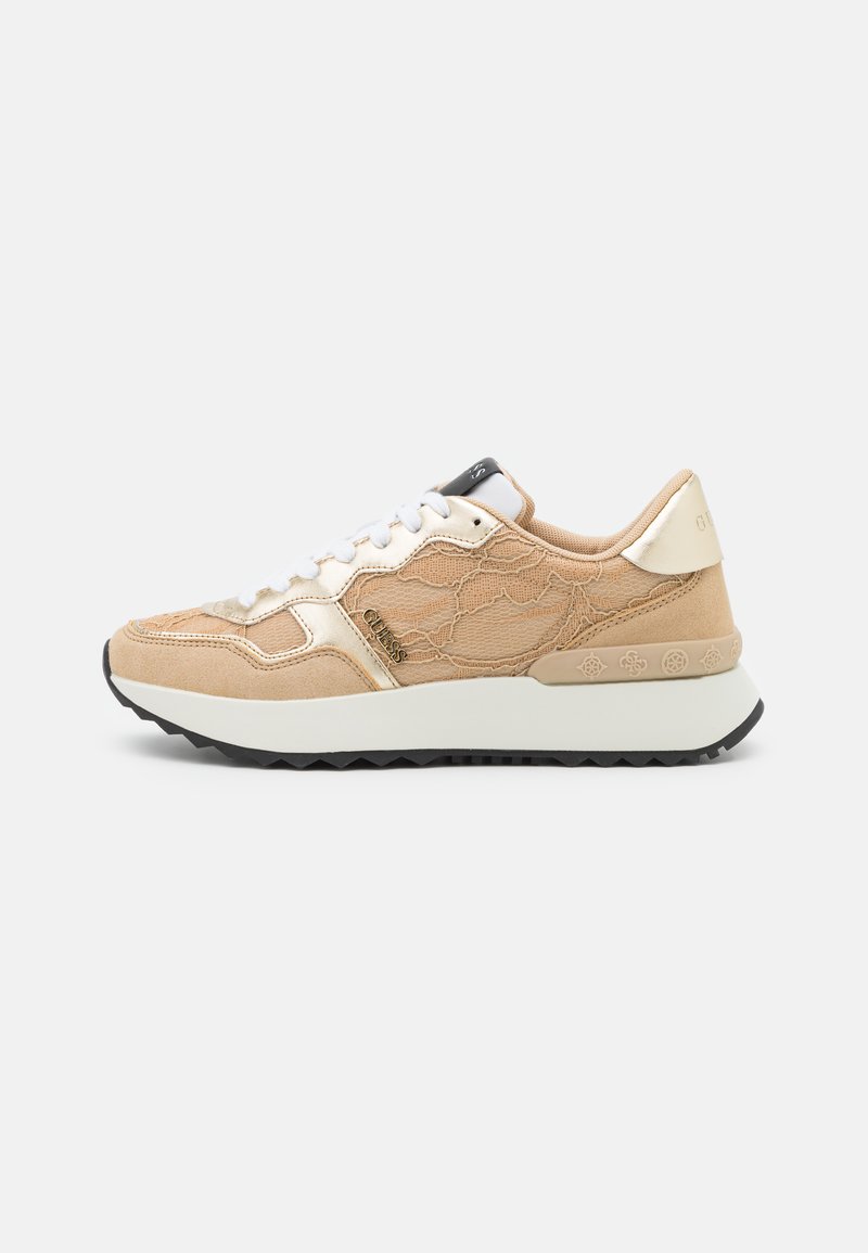 Stay stylish and comfortable this Autumn/Winter season with these Beige Sportive/Casual sneakers for women from Guess. Perfect for everyday wear, these low-top sneakers feature a sporty design with a touch of elegance. Whether you're running errands or meeting friends for coffee, these shoes will elevate your look effortlessly. Get ready to step out in style with the Guess Beige sneakers.