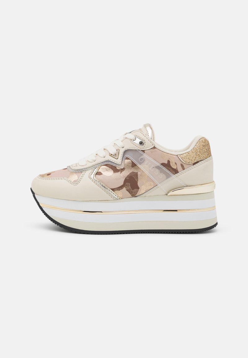 Stay stylish and comfortable this Autumn/Winter season with these Beige Sportive/Casual sneakers for women from Guess. Perfect for everyday wear, these low-top sneakers feature a sporty design with a touch of elegance. Whether you're running errands or meeting friends for coffee, these shoes will elevate your look effortlessly. Get ready to step out in style with the Guess Beige sneakers.