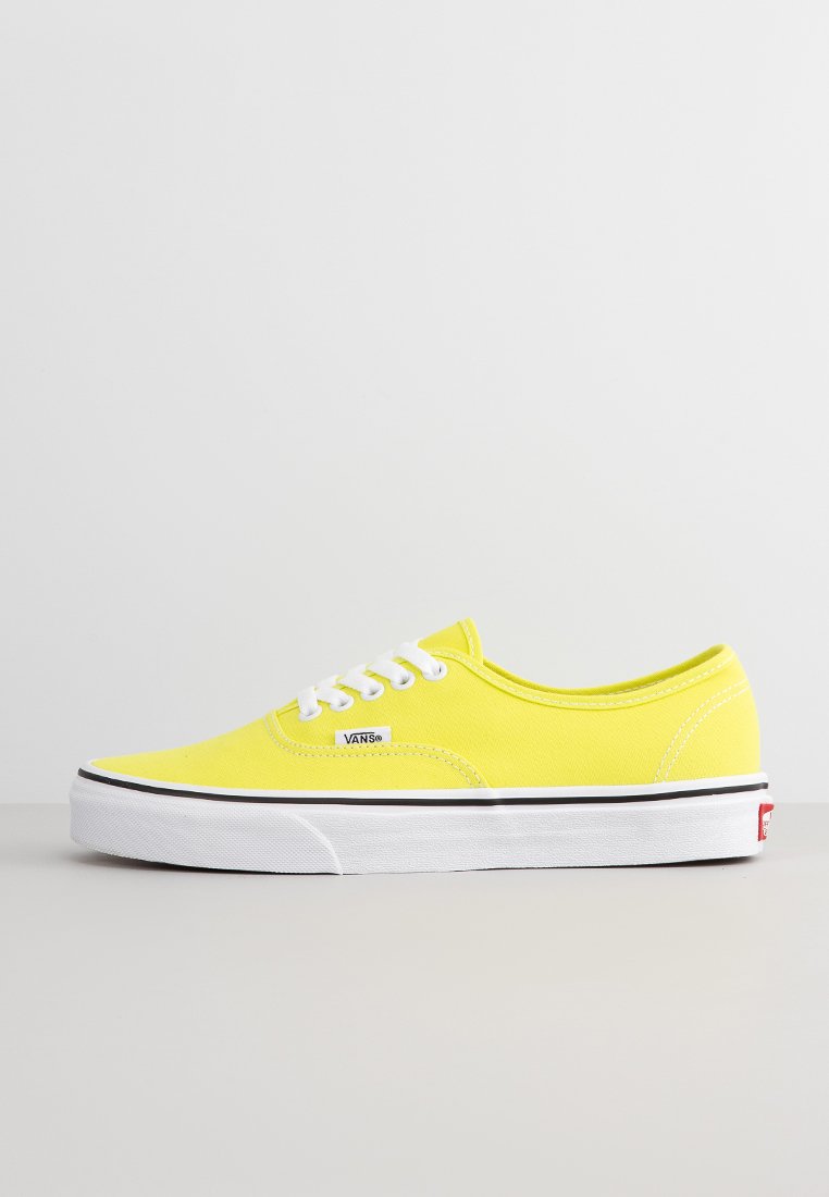 Stay stylish and comfortable this Autumn/Winter season with these sporty casual sneakers from Vans in a vibrant yellow hue. Perfect for adding a pop of color to your outfit, these low-top sneakers are ideal for everyday wear. With a classic Vans design and durable construction, these shoes are a must-have for any fashion-forward woman. Step out in style with these on-trend yellow sneakers from Vans.