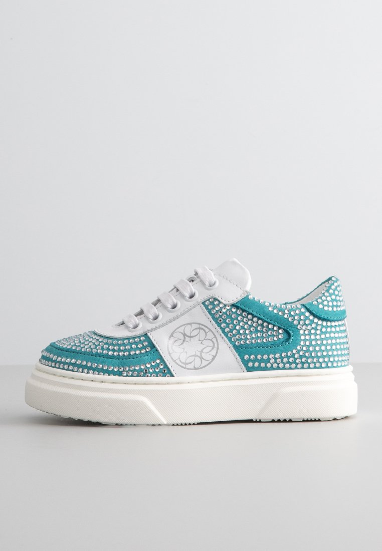 Stay comfy and stylish this Autumn/Winter season with the sporty-casual sneakers from Elie Saab. The vibrant blue color will add a pop of color to any outfit, while the sleek design ensures a trendy look. Perfect for running errands or hanging out with friends, these low-top sneakers are a must-have for any fashion-forward woman. Experience the perfect blend of fashion and function with Elie Saab's sneakers basse.