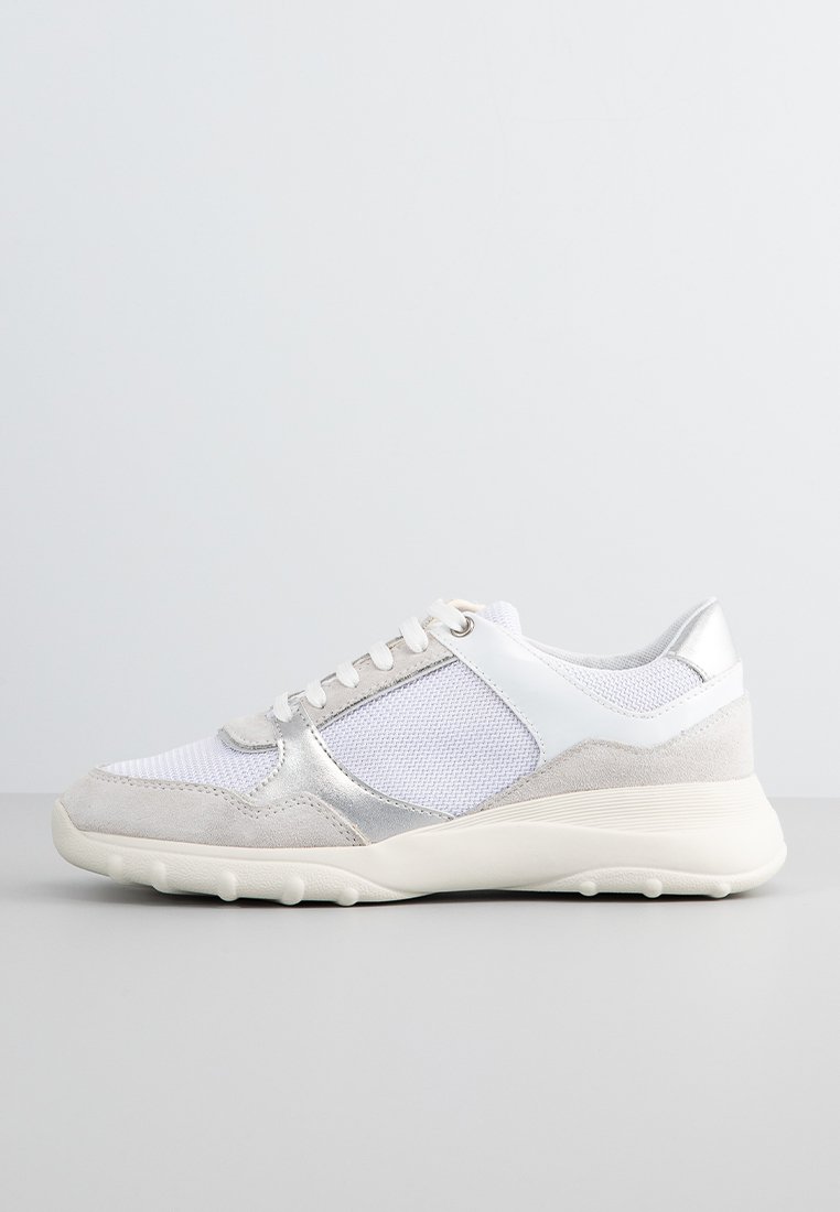 Stay on trend this Autumn/Winter season with these stylish Sportive/Casual sneakers from Geox. The crisp white color adds a touch of sophistication to any outfit. Made for women who value both fashion and comfort, these sneakers are perfect for everyday wear. Elevate your shoe game with the Geox low-top sneakers.