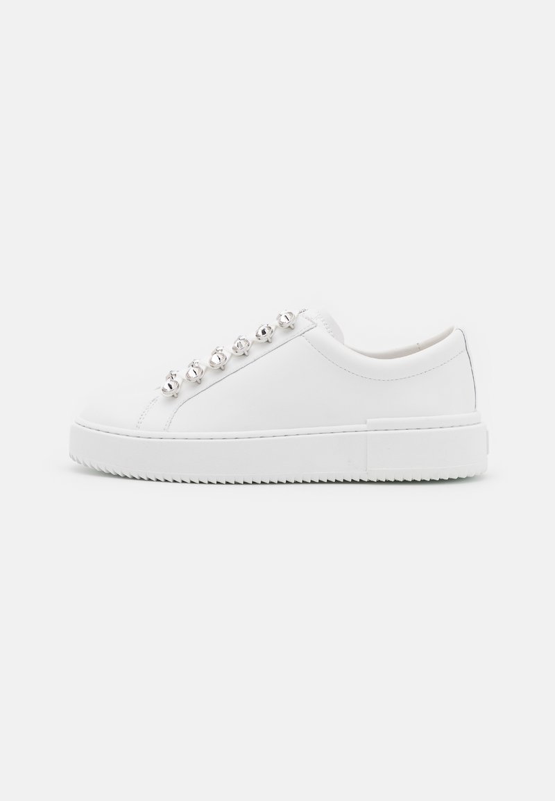 Stay stylish and comfortable this Autumn/Winter season with these Sportive/Casual White sneakers from Stuart Weitzman. Perfect for everyday wear, these low-top sneakers are versatile and on-trend. The sleek design features a durable rubber sole and a lace-up closure for a secure fit. Elevate your casual look with these must-have sneakers from Stuart Weitzman.