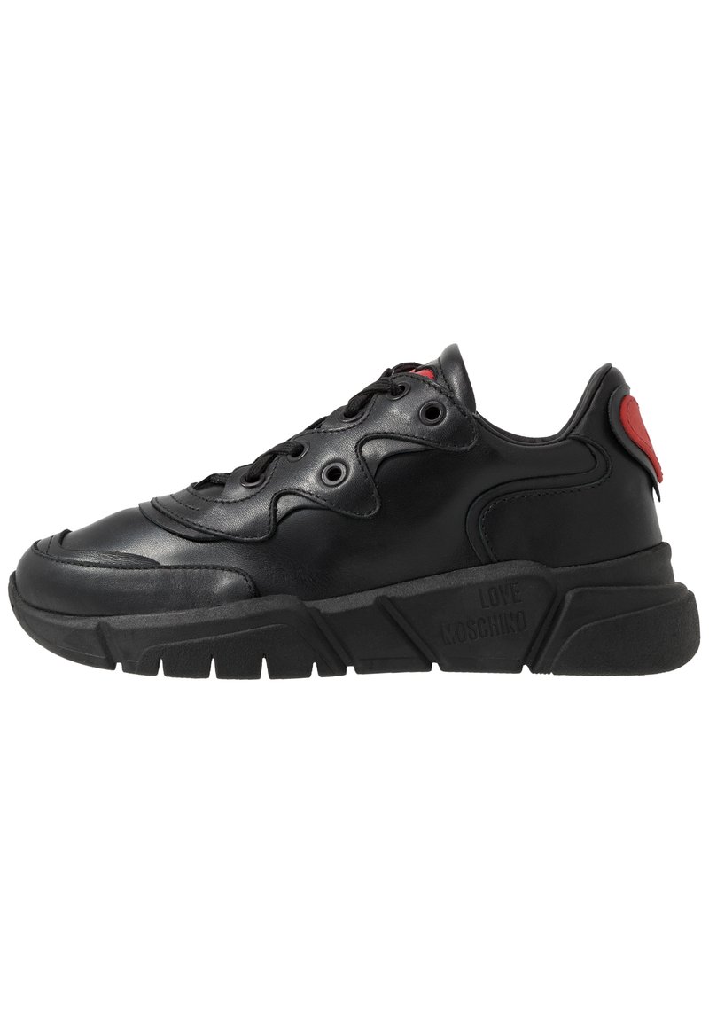 Stay stylish and comfortable this Autumn/Winter season with Love Moschino's Sportive/Casual sneakers in sleek black. These low-top sneakers are perfect for everyday wear, whether you're running errands or meeting friends for coffee. With their sporty design and trendy appeal, these shoes are a must-have for any fashion-forward woman. Elevate your casual look with Love Moschino's chic black sneakers.