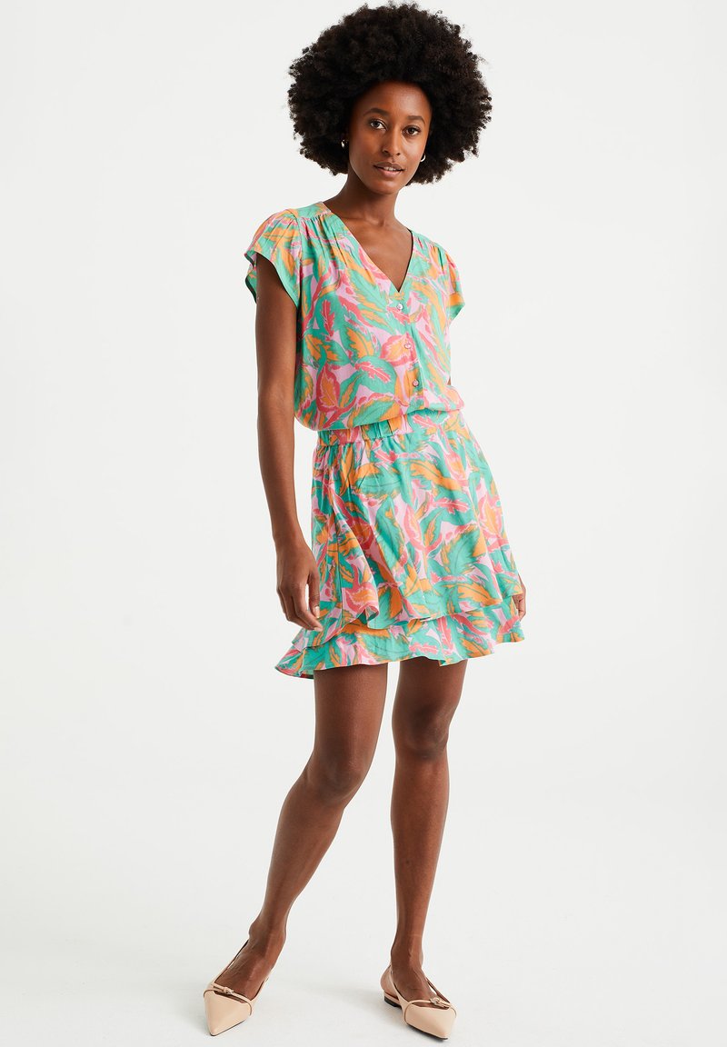 Stay effortlessly chic in this Casual/Elegant mini skirt from WE Fashion. Perfect for the Spring/Summer season, the multi-colored design adds a fun pop to any outfit. Mix and match with your favorite tops for a versatile and stylish look. Upgrade your wardrobe with this must-have piece for the season.
