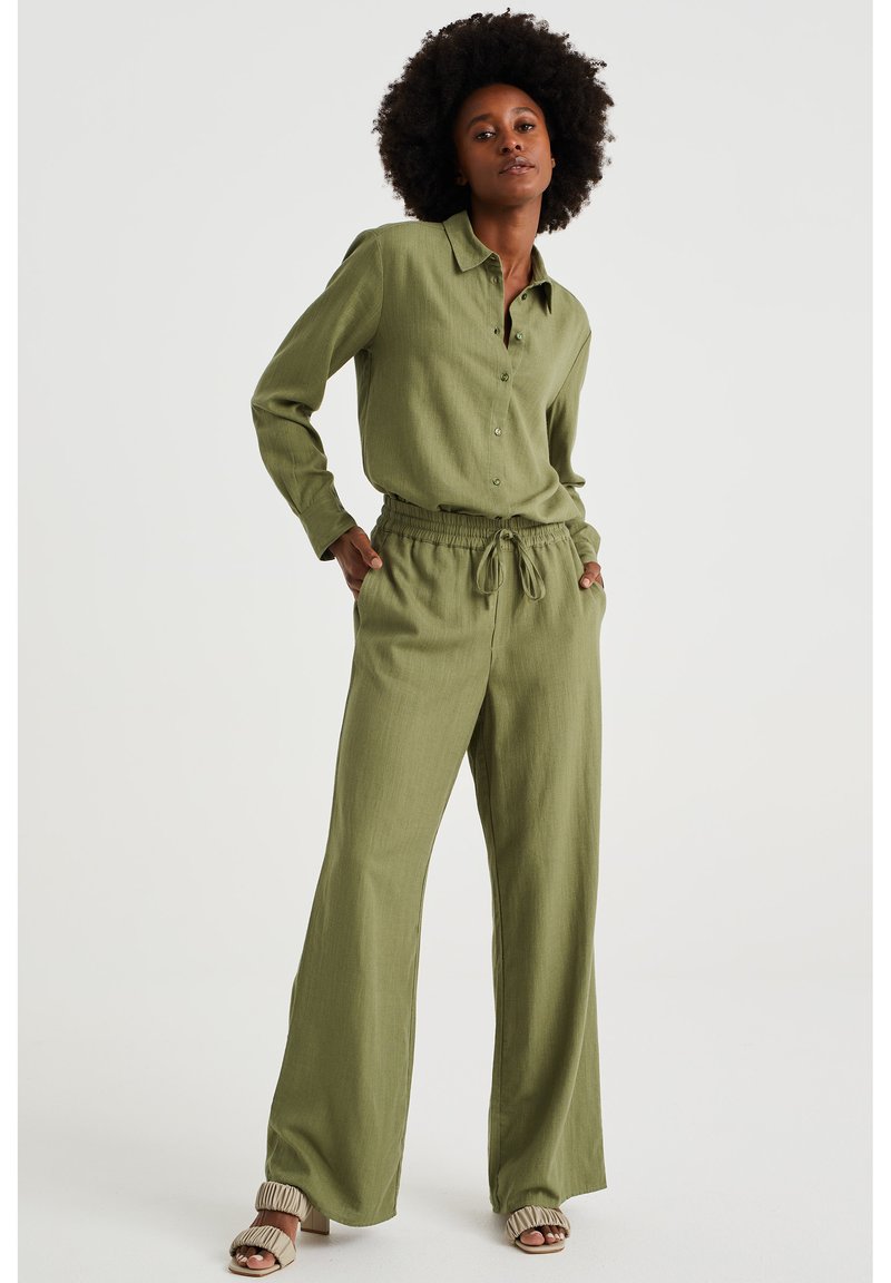 Stay cool and comfortable in these casual Women’s Pants from WE Fashion, perfect for the Spring/Summer season. The refreshing green color adds a pop of color to your wardrobe, while the relaxed fit is ideal for everyday wear. Made with high-quality materials, these pants are a versatile and stylish choice for any occasion. Add a touch of laid-back sophistication to your look with these must-have pants.