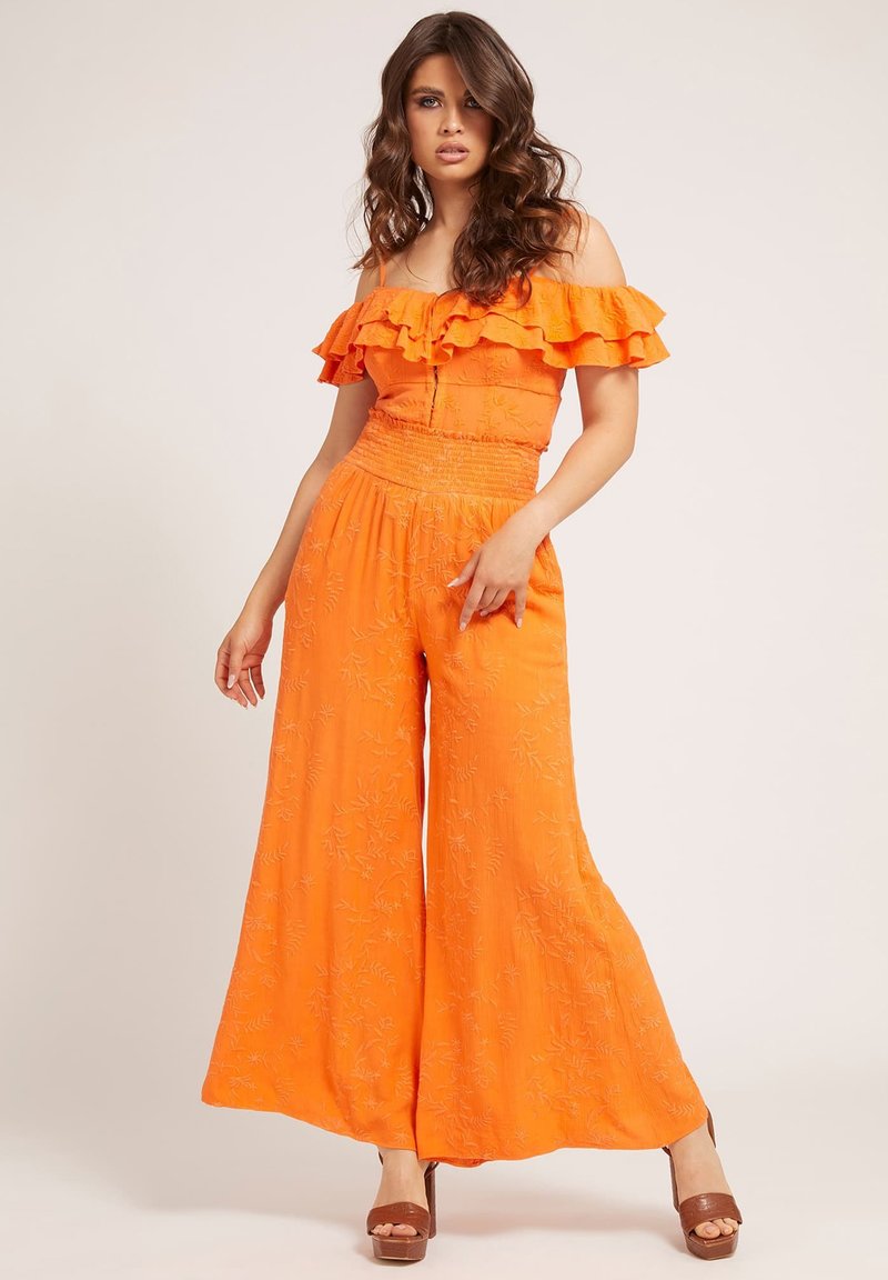 Stay stylish and comfortable this Spring/Summer with these Guess casual pants for women. In a vibrant orange hue, these pants are perfect for adding a pop of color to your wardrobe. Made with lightweight fabric, they are ideal for warmer weather. Elevate your casual look with these trendy Guess pants.