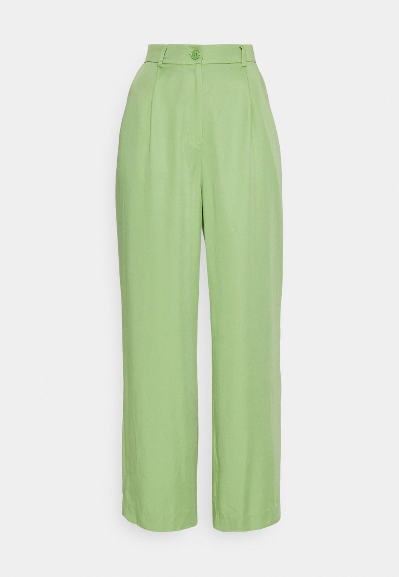 Stay effortlessly stylish this Spring/Summer with Monki's Casual Green Pants for Women. These comfortable and versatile pants are perfect for any casual occasion. The fresh green color adds a pop of color to your wardrobe. Upgrade your look with these must-have pants.