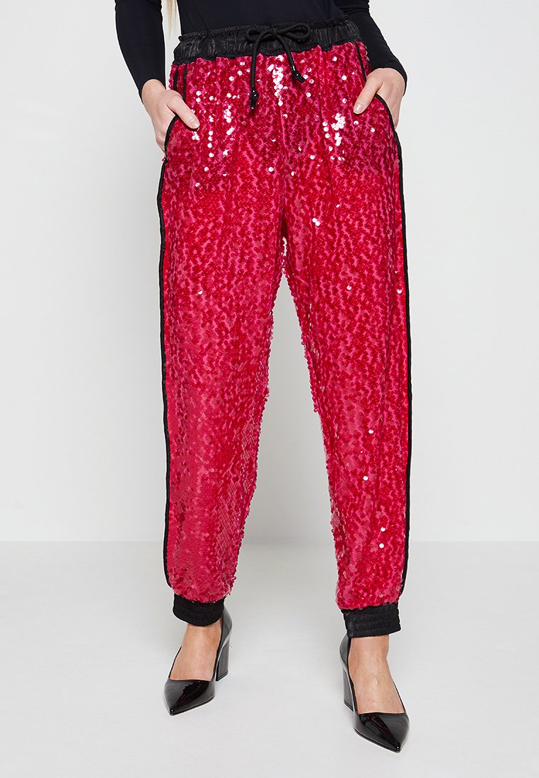 Stay stylish and comfortable this Spring/Summer with these Versace Jeans Couture Casual Pants for Women in a vibrant red hue. Perfect for any casual outing, these pants are made for both fashion and functionality. Combine them with your favorite top and sandals for a chic and effortless look. Elevate your wardrobe with these trendy red pants from Versace Jeans Couture.