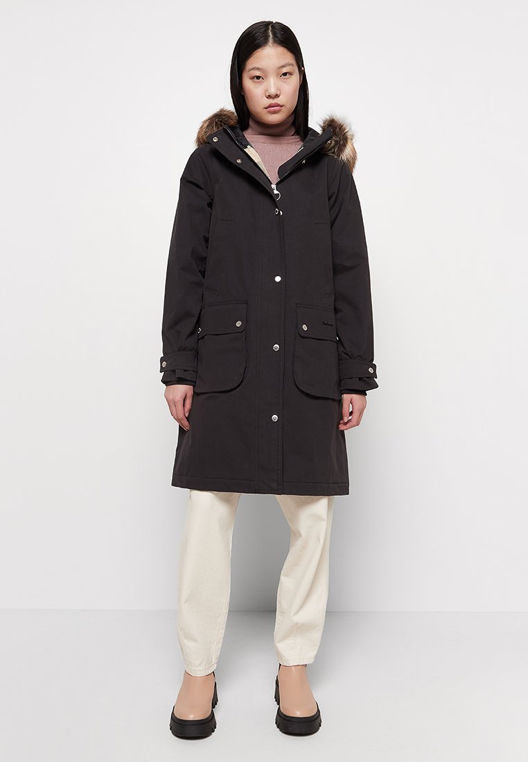 Stay effortlessly chic this Spring/Summer season with this Casual/Elegant women's Parka from Barbour. In a sleek black color, this versatile piece is perfect for any occasion. Whether you're running errands or attending a garden party, this parka will keep you looking stylish and feeling comfortable all day long. Upgrade your wardrobe with this timeless and practical outerwear essential.