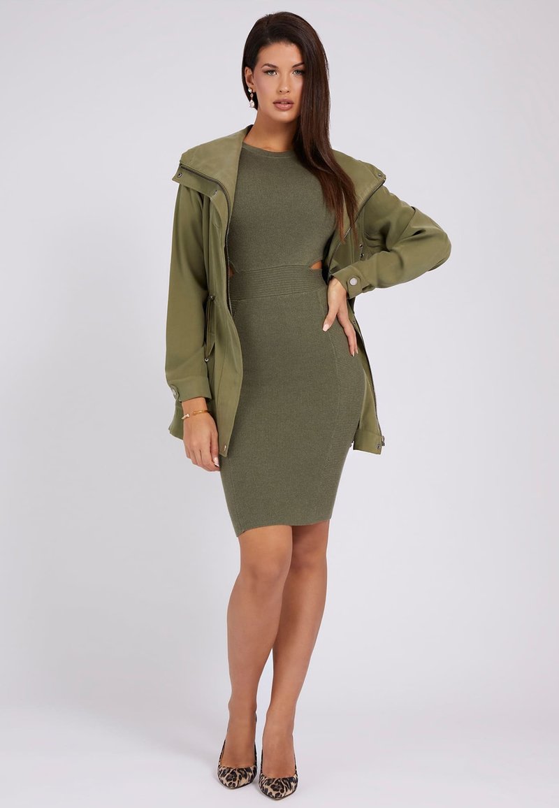 Stay stylish and classy this Spring/Summer season with Guess's Casual/Elegant Beige parka for women. Perfect for any occasion, this versatile piece effortlessly combines comfort with sophistication. Whether you're out for a stroll or attending a patio brunch, this parka is a must-have for your wardrobe. Elevate your look with Guess's timeless design in a chic Beige hue.