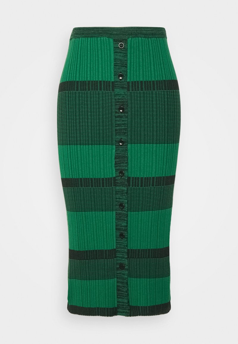 This Green Pencil Skirt from Proenza Schouler White Label effortlessly combines casual comfort with elegant style. Perfect for the Spring/Summer season, the skirt is versatile and chic. Whether paired with a simple t-shirt or dressed up with a blouse, this skirt is a must-have for any fashion-forward woman. Add a touch of sophistication to your wardrobe with this timeless piece.