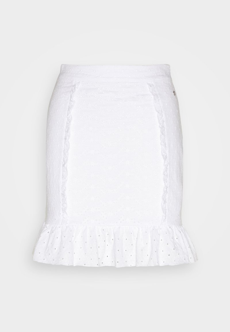 Stay chic and sophisticated this Spring/Summer season with this Casual/Elegant Guess skirt in classic white. Perfect for any occasion, this sleek pencil skirt is a must-have for any stylish woman's wardrobe. Dress it up with heels for a night out or pair it with sandals for a more relaxed look. Add a touch of timeless elegance to your outfit with this versatile piece.