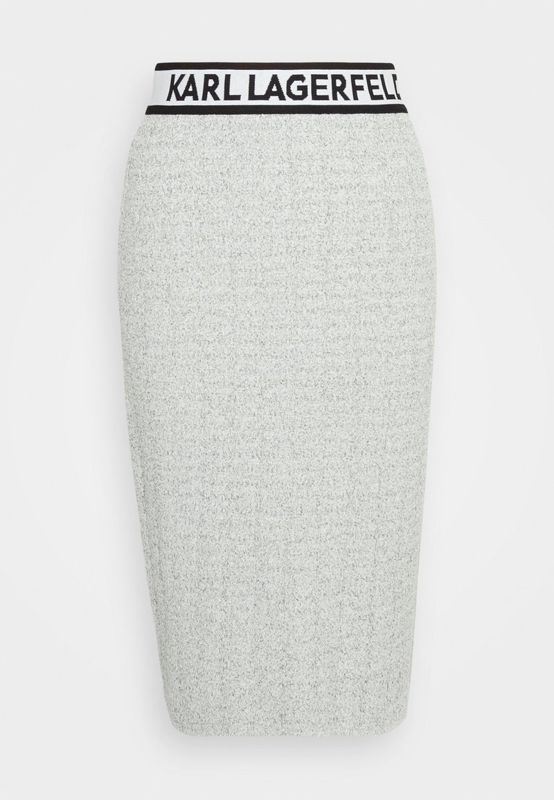 Elevate your spring/summer wardrobe with this sleek and sophisticated Karl Lagerfeld Grey Pencil Skirt. Perfect for both casual outings and more elegant occasions, this versatile piece effortlessly combines style and comfort. The timeless grey color adds a modern touch to any outfit, making it a must-have for the season. Upgrade your look with this chic and fashionable pencil skirt.