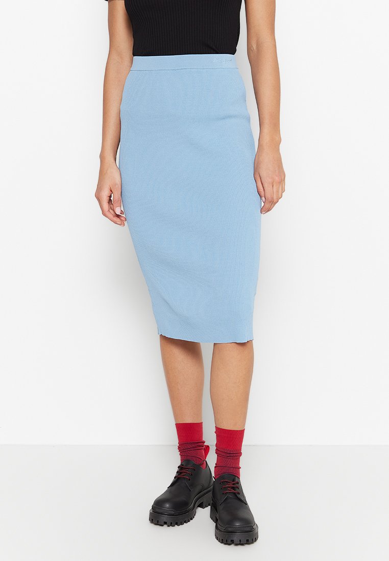 Elevate your spring/summer wardrobe with this Casual/Elegant women's skirt from Karl Lagerfeld. Featuring a sleek pencil silhouette and a chic blue hue, this versatile piece is perfect for any occasion. Dress it up with heels and a blouse for a night out, or pair it with sandals and a t-shirt for a more relaxed look. Stay stylish and comfortable all season long with this must-have addition to your closet.