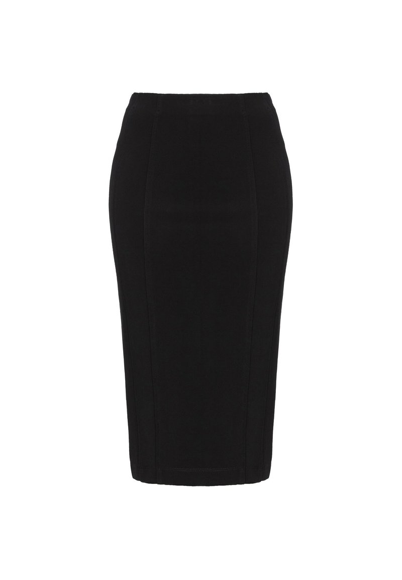 This sleek black pencil skirt from Pinko is the perfect blend of casual and elegant. Ideal for the Spring/Summer season, this versatile piece can be dressed up or down with ease. The form-fitting silhouette flatters the figure, making it a must-have for any wardrobe. Add a touch of sophistication to your look with this timeless classic.