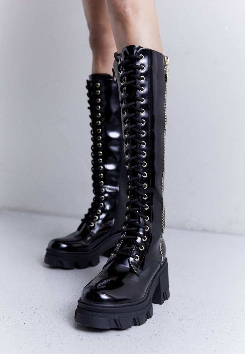 Stay stylish and comfortable this Autumn/Winter season with these Casual Women's Boots from Versace Jeans Couture. The sleek black color adds a touch of sophistication to any outfit. Perfect for everyday wear, these boots feature a trendy platform design. Elevate your wardrobe with the versatile and chic stivali con plateau.