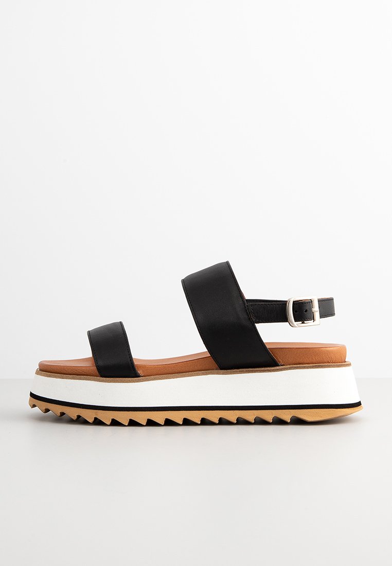 Elevate your casual style this Spring/Summer with CAFèNOIR's Women's Black Platform Sandals. These chic sandals feature a comfortable design perfect for all-day wear. The versatile black color makes them easy to pair with any outfit. Step out in fashion-forward comfort with these stylish platform sandals.