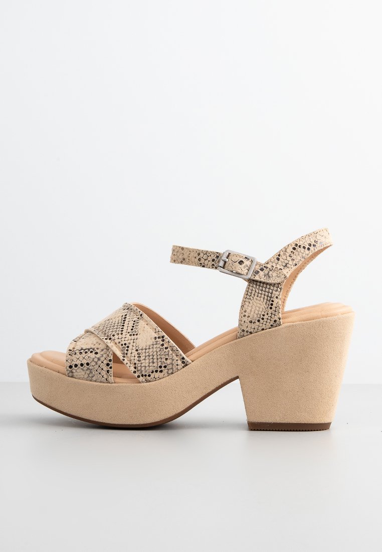 Elevate your casual summer style with these beige Clarks sandals. Perfect for the warm weather, these sandals are a comfortable and chic choice for any outfit. Featuring a platform heel, these shoes provide both style and support for all-day wear. Step into the season with these must-have sandals from Clarks.