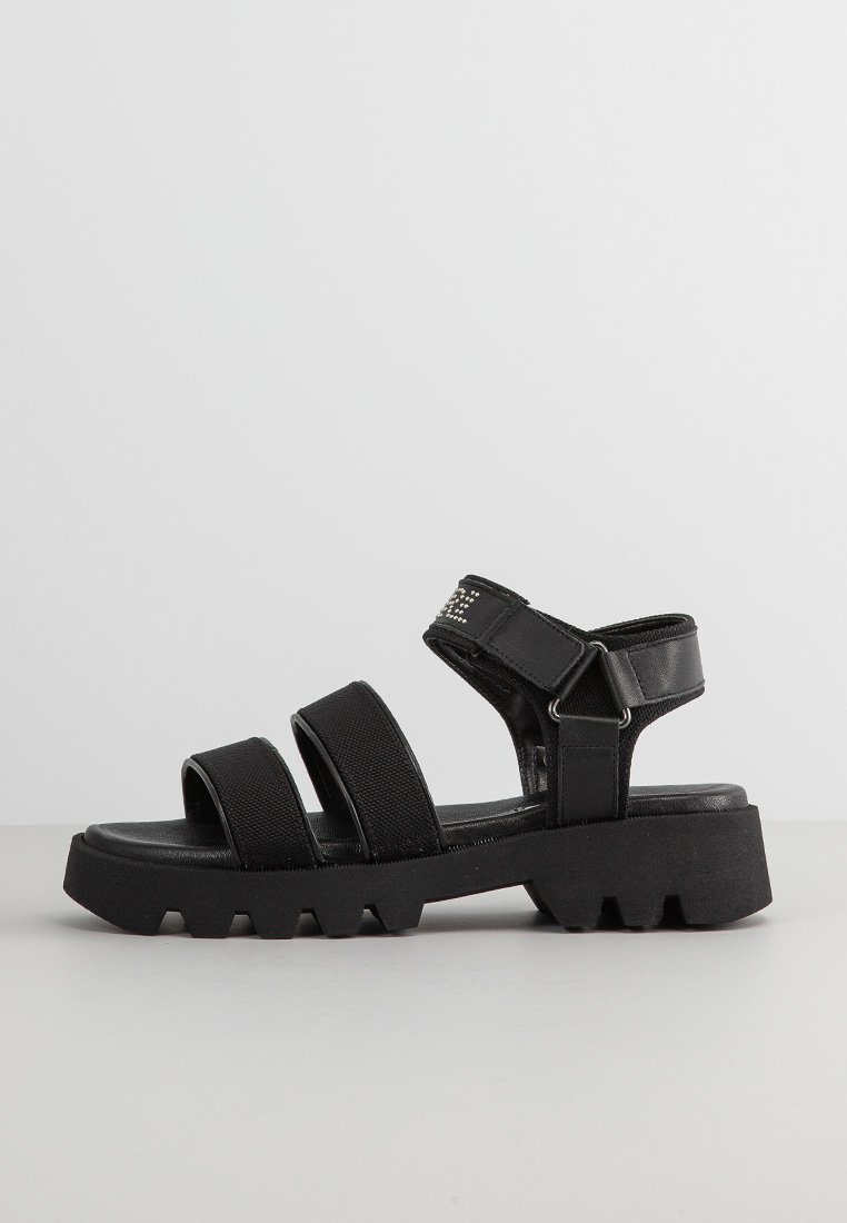 Elevate your casual look with these Karl Lagerfeld Women's Black Platform Sandals, perfect for the Spring/Summer season. The sleek black color adds a sophisticated touch to any outfit, while the platform heel provides both style and comfort. Step out in style and make a statement with these trendy sandals from Karl Lagerfeld. Perfect for any occasion, from brunch with friends to a night out on the town.