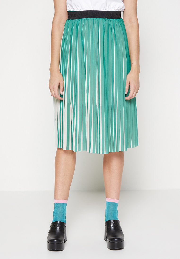 This casual and elegant green skirt from Karl Lagerfeld is perfect for the Spring/Summer season. Made for women who love to look stylish and feel comfortable at the same time. The pleated design adds a touch of sophistication to any outfit. Ideal for those who want to effortlessly transition from day to night.