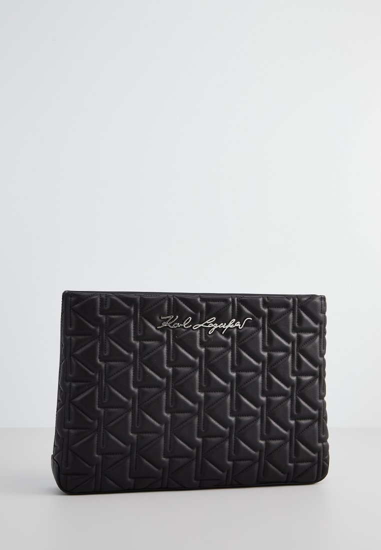 This versatile Karl Lagerfeld black pochette is the perfect accessory for the Spring/Summer season. A stylish blend of casual and elegant, it can easily transition from day to night. With its sleek design and high-quality materials, this pochette is a must-have for any woman looking to elevate her outfit. Add a touch of sophistication to any look with this timeless accessory.