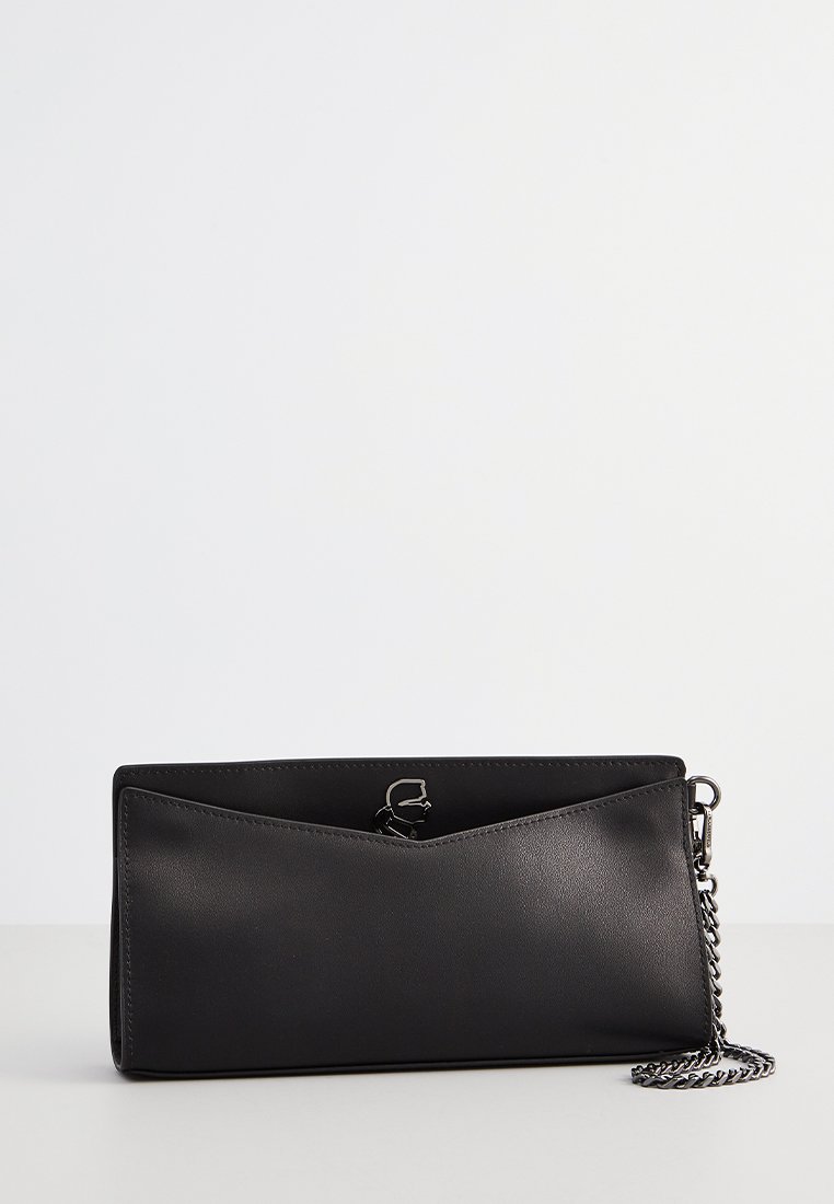 This versatile Karl Lagerfeld black pochette is the perfect accessory for the Spring/Summer season. A stylish blend of casual and elegant, it can easily transition from day to night. With its sleek design and high-quality materials, this pochette is a must-have for any woman looking to elevate her outfit. Add a touch of sophistication to any look with this timeless accessory.