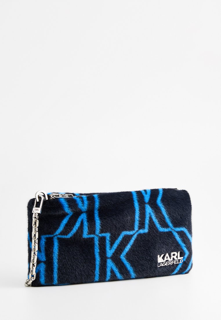 This versatile Karl Lagerfeld black pochette is the perfect accessory for the Spring/Summer season. A stylish blend of casual and elegant, it can easily transition from day to night. With its sleek design and high-quality materials, this pochette is a must-have for any woman looking to elevate her outfit. Add a touch of sophistication to any look with this timeless accessory.