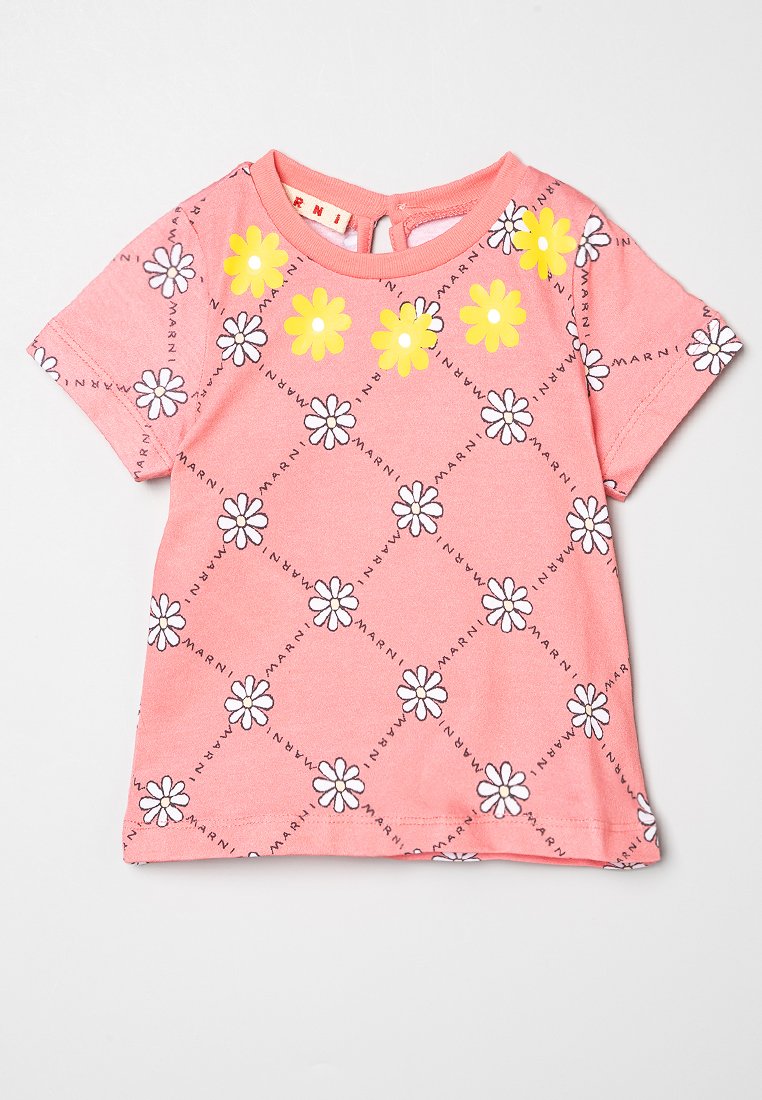 Stay effortlessly chic in this Marni Women's Casual Style T-shirt for the Spring/Summer season. Featuring a vibrant multi-color print, this T-shirt is perfect for adding a pop of color to your wardrobe. Made from high quality materials, this shirt is both stylish and comfortable, making it a versatile piece for any casual look. Elevate your outfit with this statement piece that is sure to turn heads.