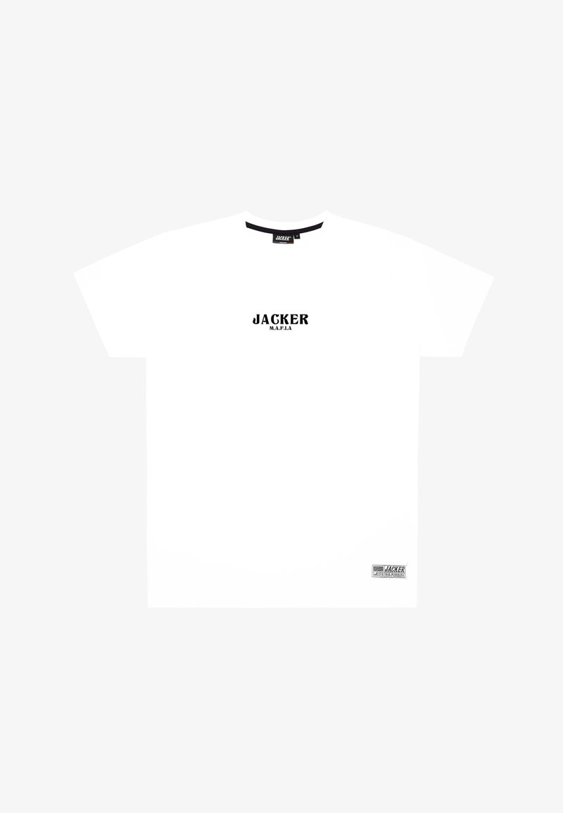Elevate your casual style with the Spring/Summer Women's White T-Shirt from Jacker. This classic tee features a stylish print and is perfect for warmer weather. Pair with your favorite jeans or shorts for a chic and effortless look. Add a touch of sophistication to your wardrobe with this must-have t-shirt.