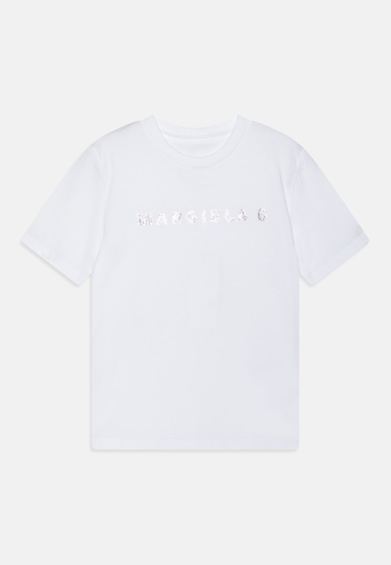 Elevate your casual wardrobe with this stylish MM6 Maison Margiela T-shirt. Made for the Spring/Summer season, this white tee features a trendy print that adds a touch of charm. Perfect for pairing with jeans or shorts, it exudes effortless chic vibes. Stay cool and fashionable in this must-have piece for your warm-weather ensembles.