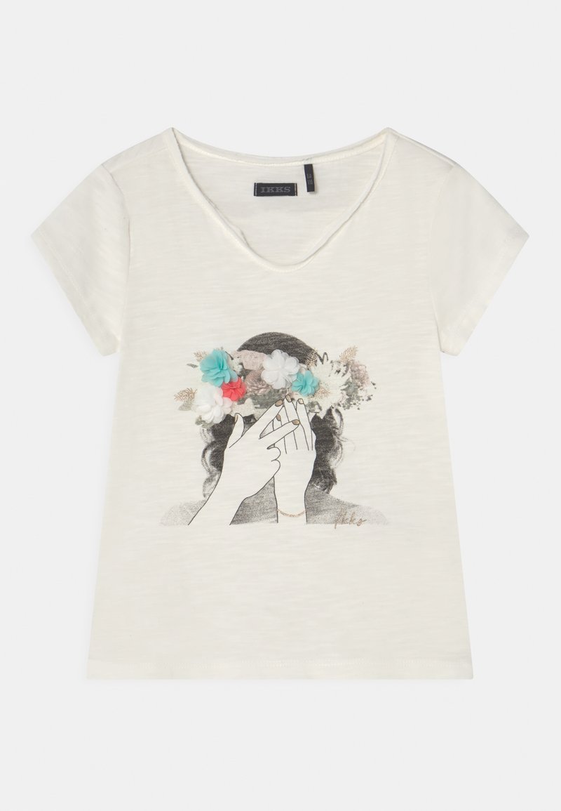 Elevate your casual look with this IKKS Women's T-shirt for Spring/Summer. Crafted in stylish white, this tee features a printed design that adds a touch of flair to any outfit. Perfect for effortless style on warm days, this T-shirt is a must-have for your wardrobe. Stay chic and comfortable all season long with this versatile piece.