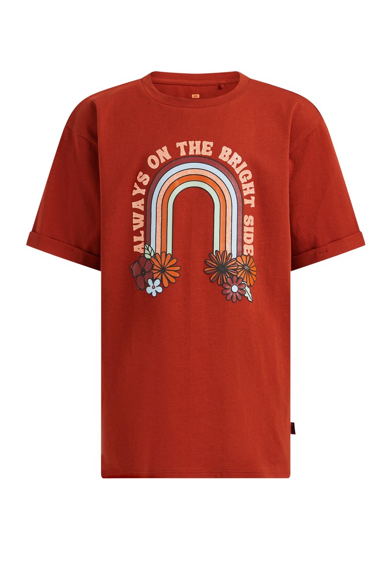 Stay cool and casual in this stylish Women's T-shirt from WE Fashion. Perfect for the Spring/Summer season, this brown tee features a trendy print that adds a touch of flair to any outfit. Made for comfort and style, this T-shirt is a must-have for your wardrobe.