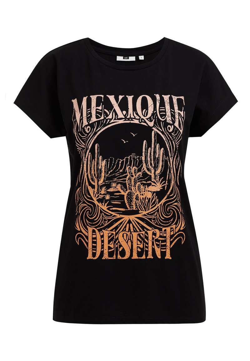 Stay cool and stylish this Spring/Summer with the Women's Casual T-shirt from WE Fashion. This black tee features a trendy print, perfect for adding a fun touch to your outfit. Pair it with your favorite jeans or shorts for a laid-back look that's perfect for any casual occasion. Upgrade your wardrobe with this versatile and comfortable t-shirt.