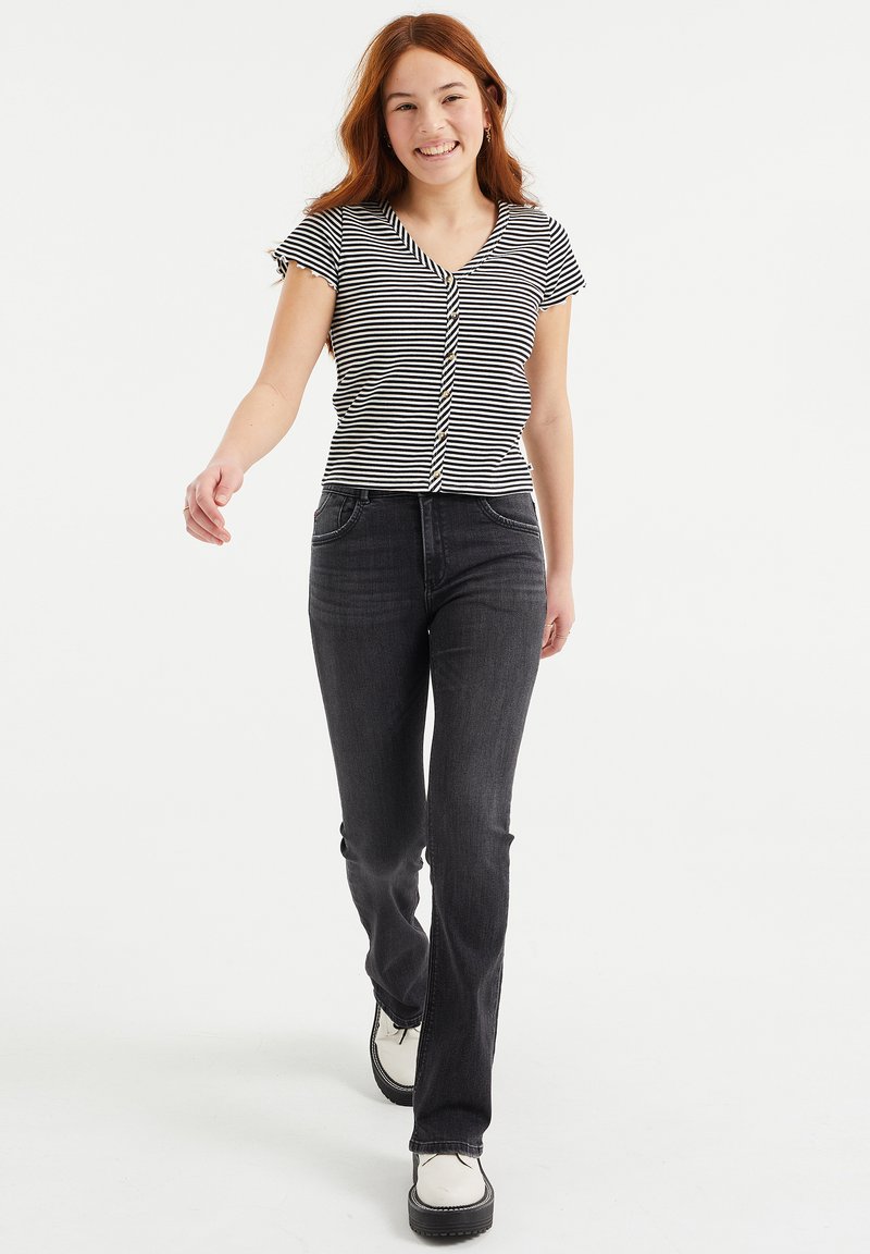 Stay cool and stylish this Spring/Summer with the Women's Casual T-shirt from WE Fashion. This black tee features a trendy print, perfect for adding a fun touch to your outfit. Pair it with your favorite jeans or shorts for a laid-back look that's perfect for any casual occasion. Upgrade your wardrobe with this versatile and comfortable t-shirt.