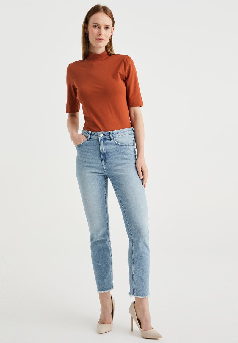 Stay cool and casual in this stylish Women's T-shirt from WE Fashion. Perfect for the Spring/Summer season, this brown tee features a trendy print that adds a touch of flair to any outfit. Made for comfort and style, this T-shirt is a must-have for your wardrobe.