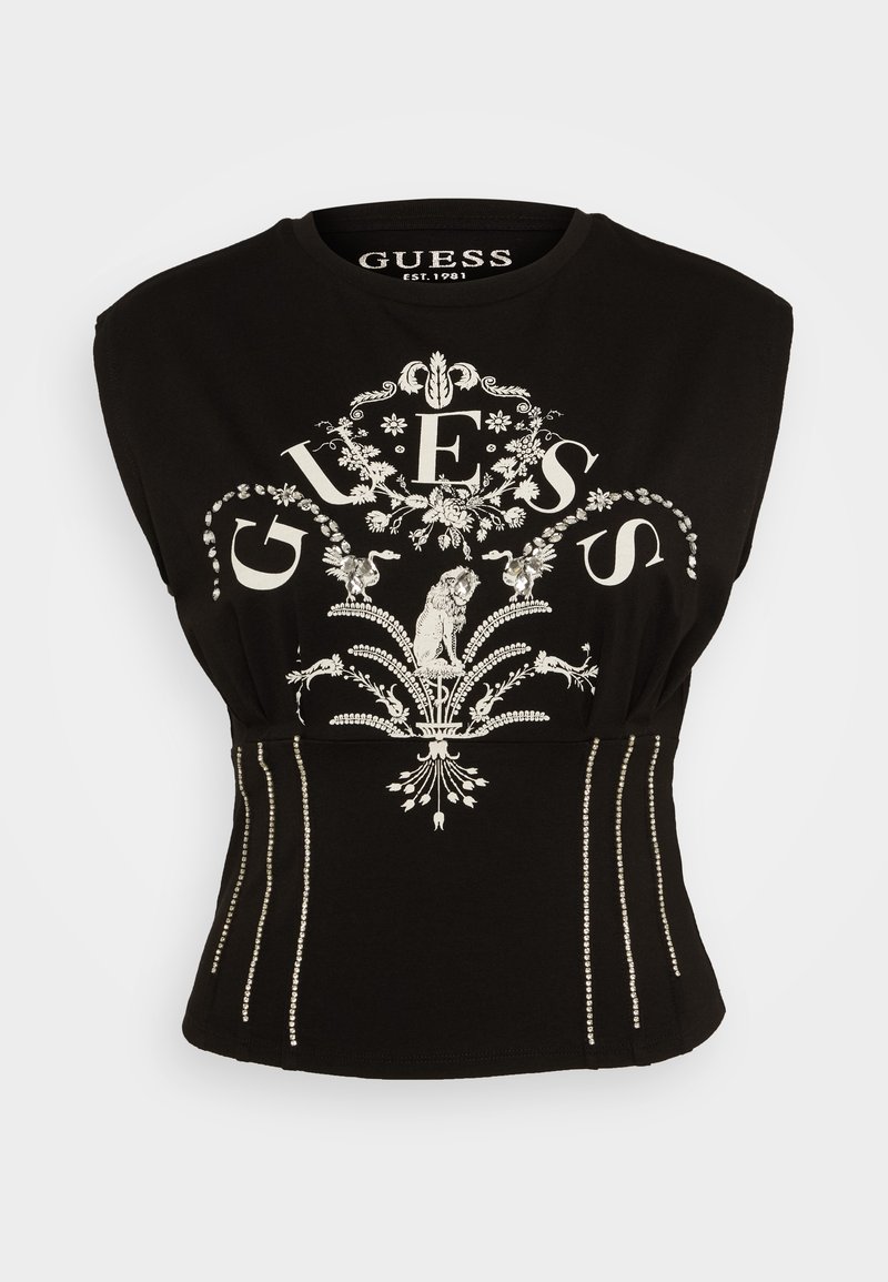 Stay effortlessly chic in this Guess Casual Style t-shirt for women. Perfect for the Spring/Summer season, the black color adds a touch of sophistication to any outfit. The t-shirt features a stylish print, making it a versatile option for any occasion. Add this wardrobe essential to your collection for a trendy and comfortable look.