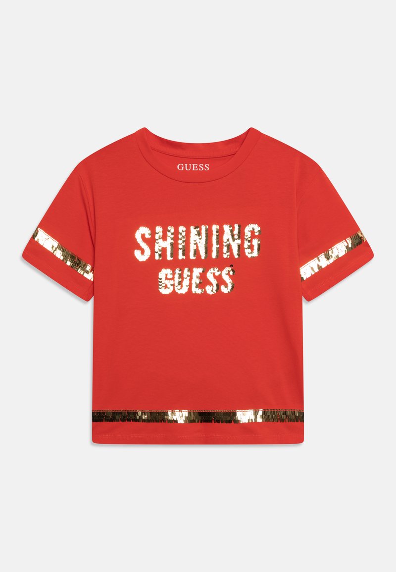Elevate your casual style with Guess's women's T-shirt for the Spring/Summer season. This vibrant red tee features a trendy print, perfect for adding a pop of color to your wardrobe. Crafted from soft, breathable fabric, it is ideal for staying comfortable and chic on warm days. Pair with your favorite jeans or shorts for a stylish and effortless look.
