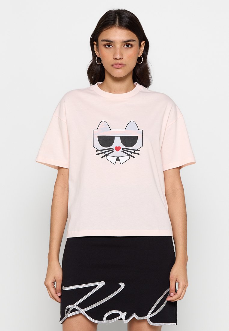 Elevate your casual wardrobe with this Karl Lagerfeld Women's T-shirt in a soft pink hue. Perfect for the Spring/Summer season, this stylish tee features a trendy print. Made from high-quality materials, it is both chic and comfortable for everyday wear. Add a touch of designer flair to your outfit with this must-have piece.